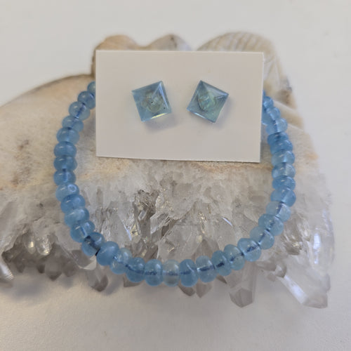 Larimar Heart Bracelet and Stud Ear-ring Gift Set