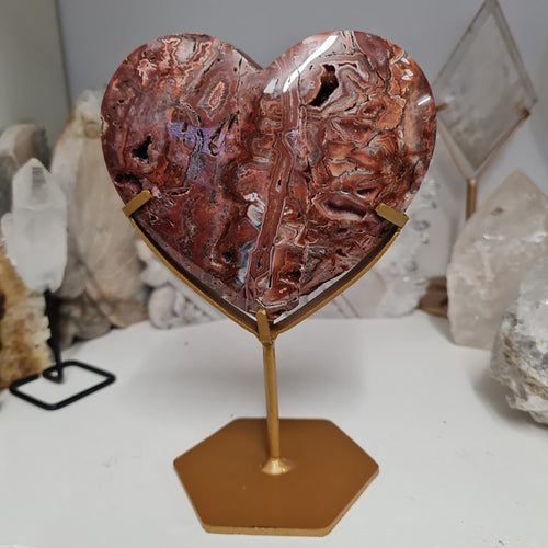 Pink Crazy Lace Agate Heart with Stand