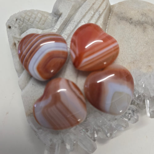 Hearts are very similar to palm stones, they are just shaped to look like a heart. Hearts can range in many sizes and styles. They connect with the energy of the heart chakra and emit their energy in a very loving and gentle manner while giving us a sense of peace and harmony. Hearts can be good for those who are extra sensitive to the energies of crystals since the energy output is softer.