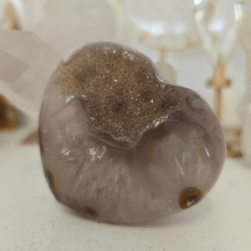 Hearts are very similar to palm stones, they are just shaped to look like a heart. Hearts can range in many sizes and styles. They connect with the energy of the heart chakra and emit their energy in a very loving and gentle manner while giving us a sense of peace and harmony. Hearts can be good for those who are extra sensitive to the energies of crystals since the energy output is softer.