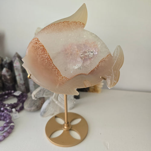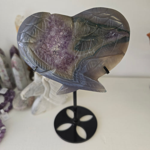 Amethyst Faceted Diamond with Spinning Stand - Rainbows