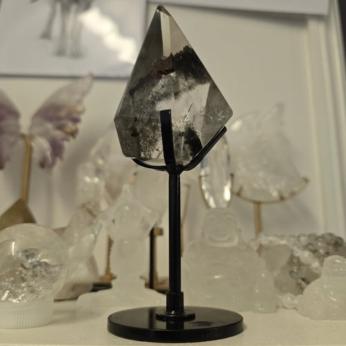 Faceted Clear Quartz Diamond with Stand - Rainbows