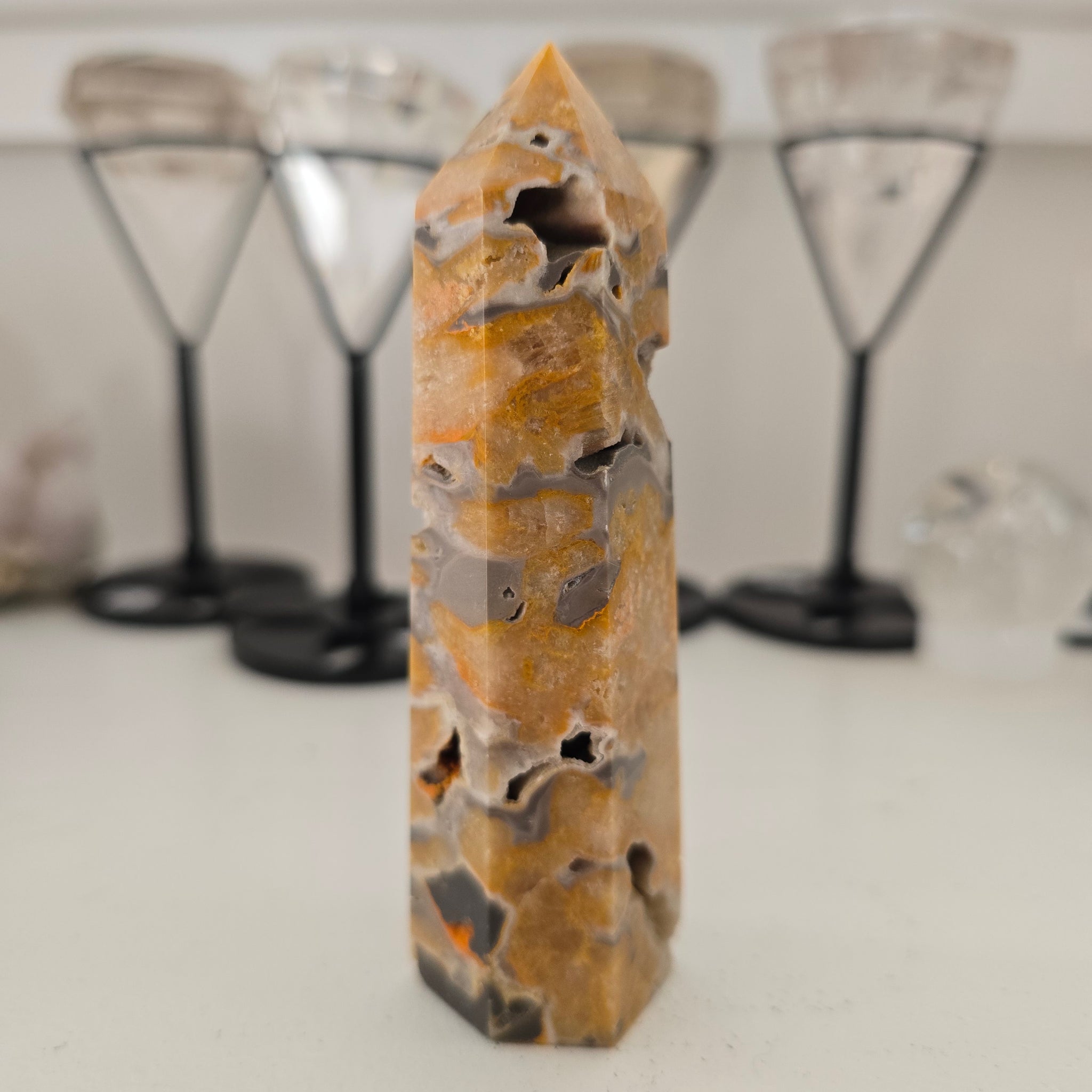 This beautiful rich coloured BumblebeeJasper Tower has 6 sides and is approximately 10 x 2.5 x 2.5 cm - 115 g.