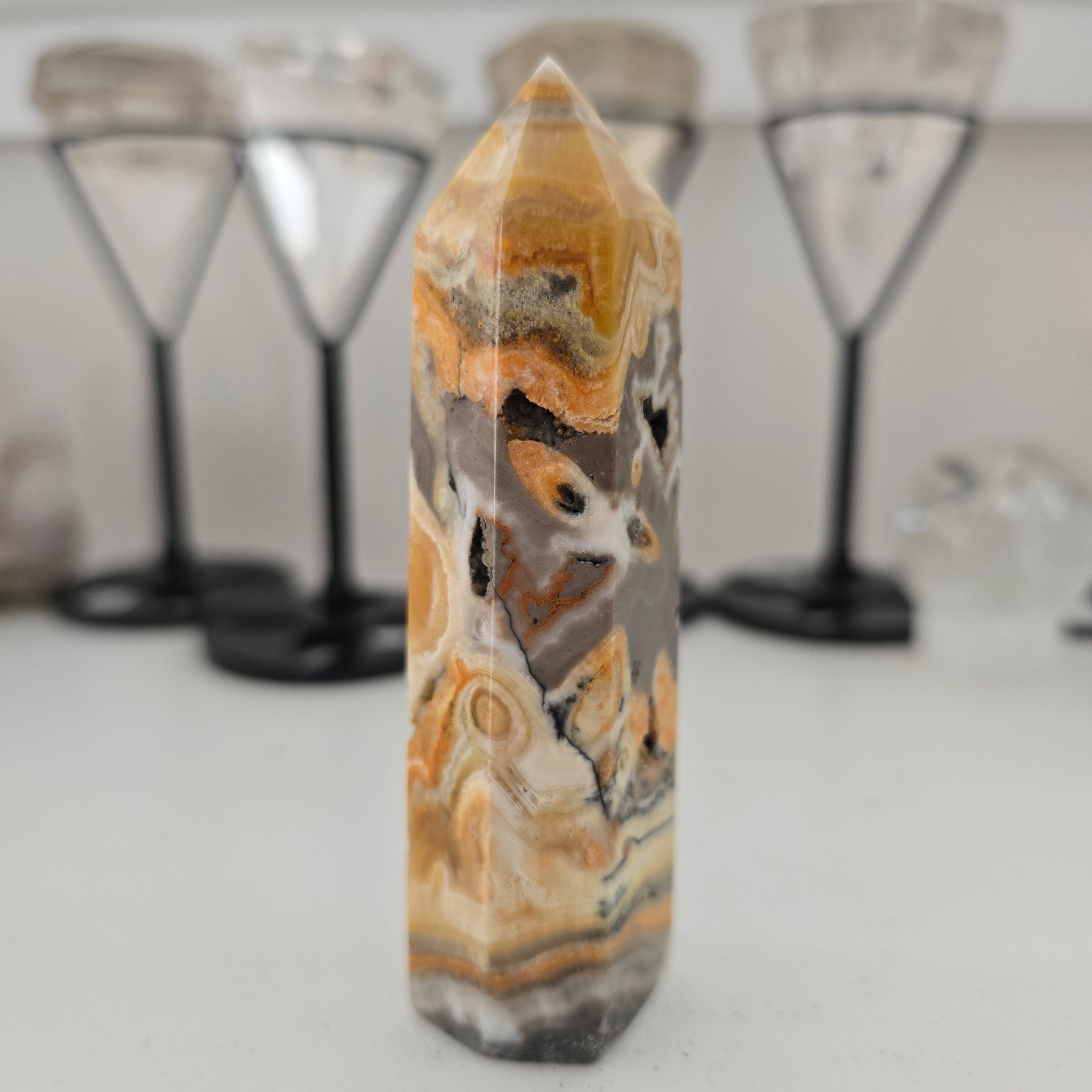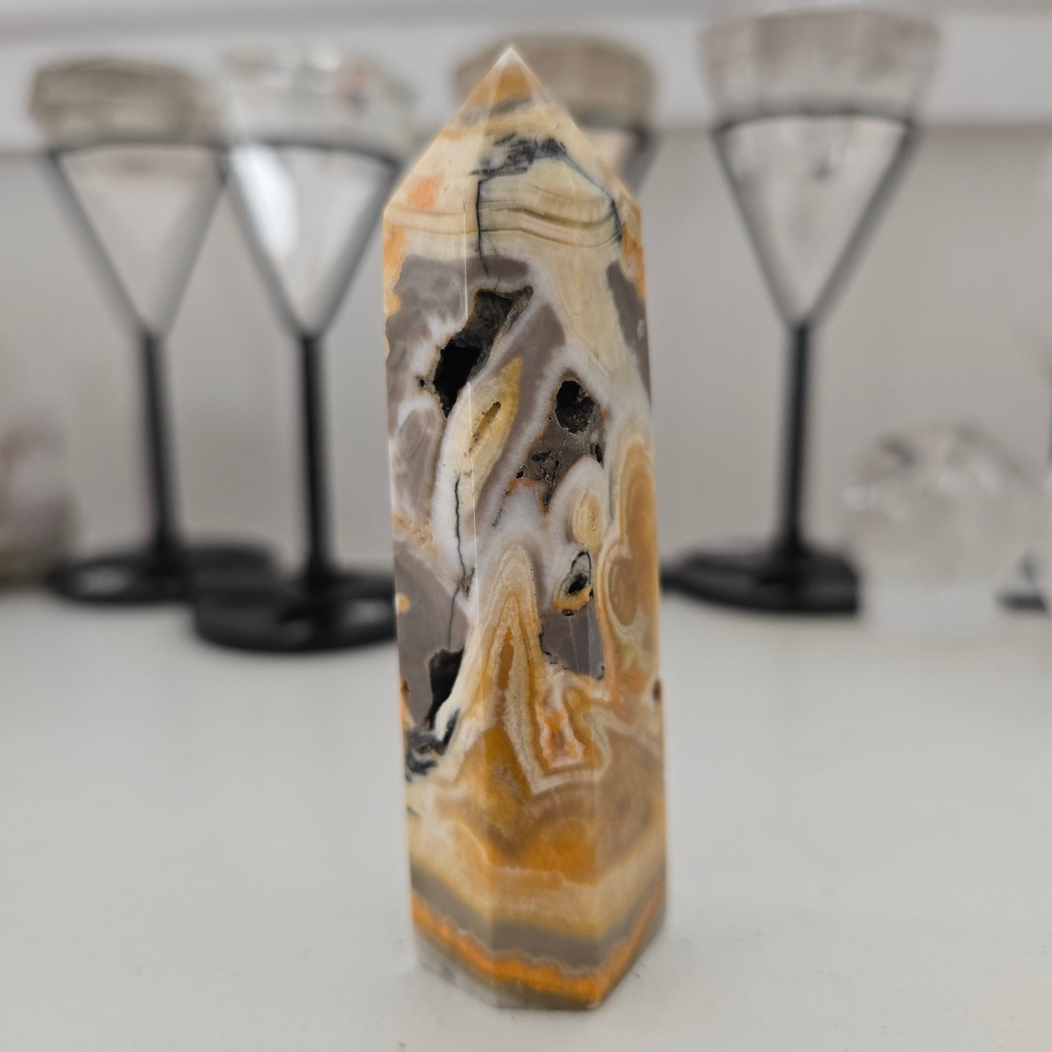 This beautiful rich coloured BumblebeeJasper Tower has 6 sides and is approximately 9.5 x 2.5 x 2 cm - 93 g.