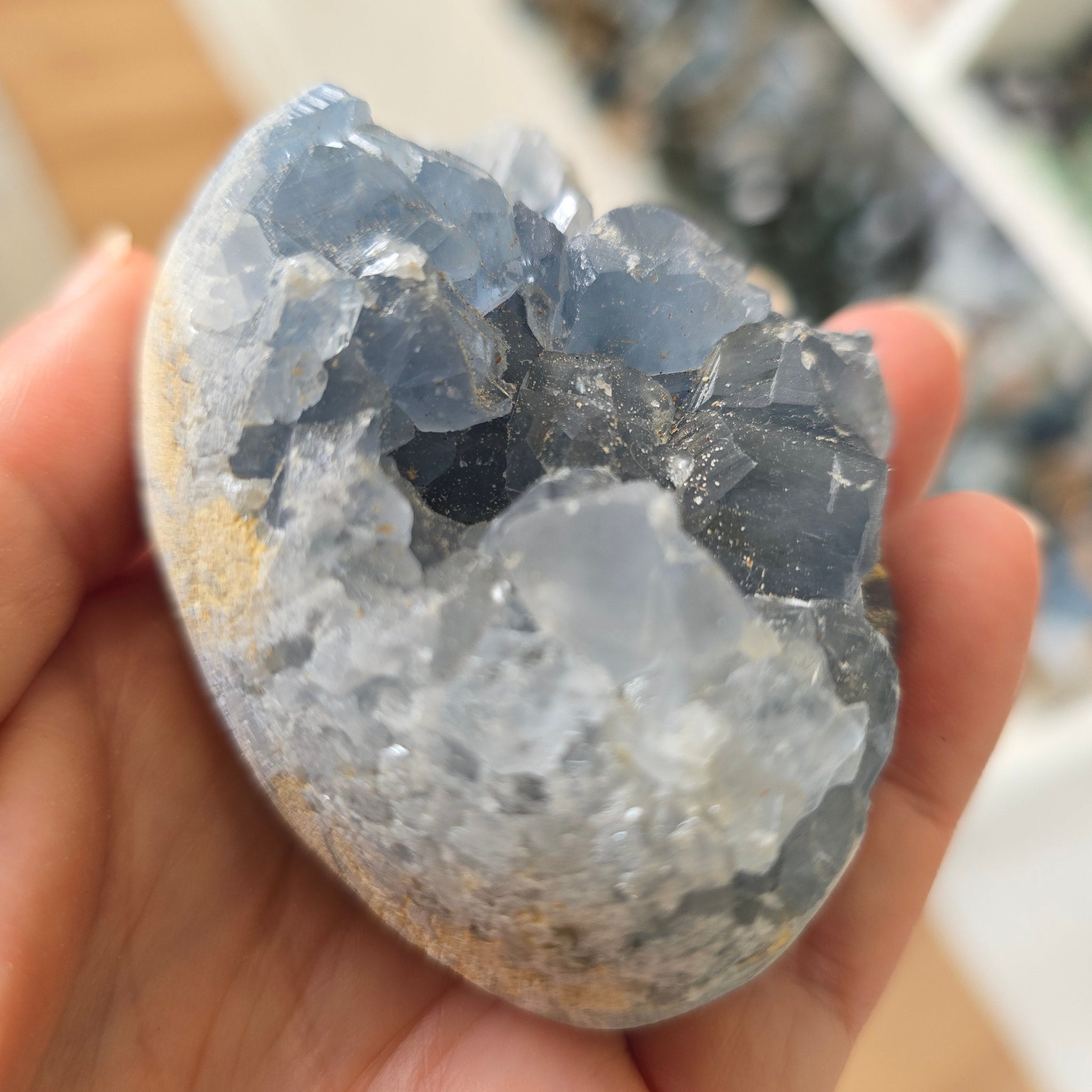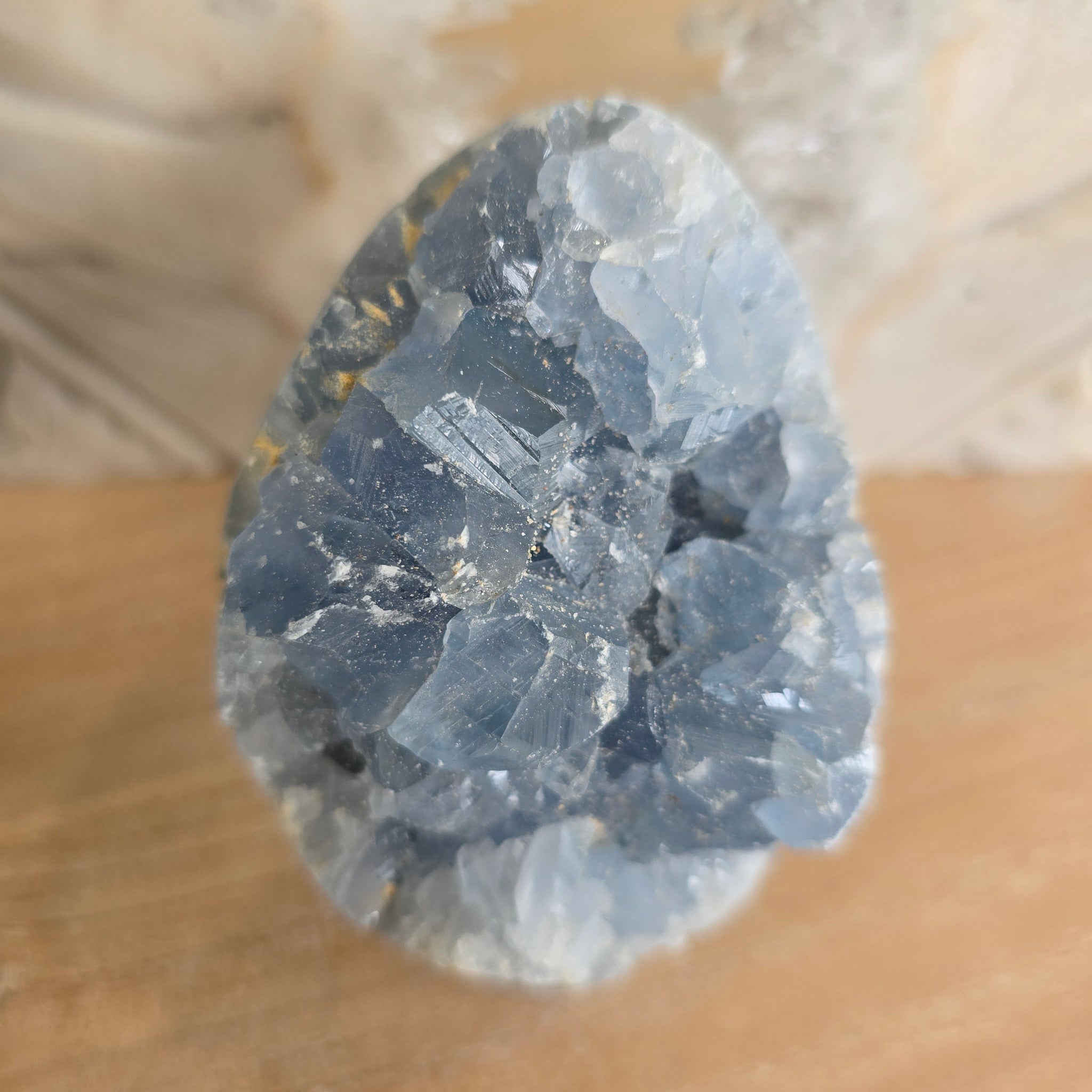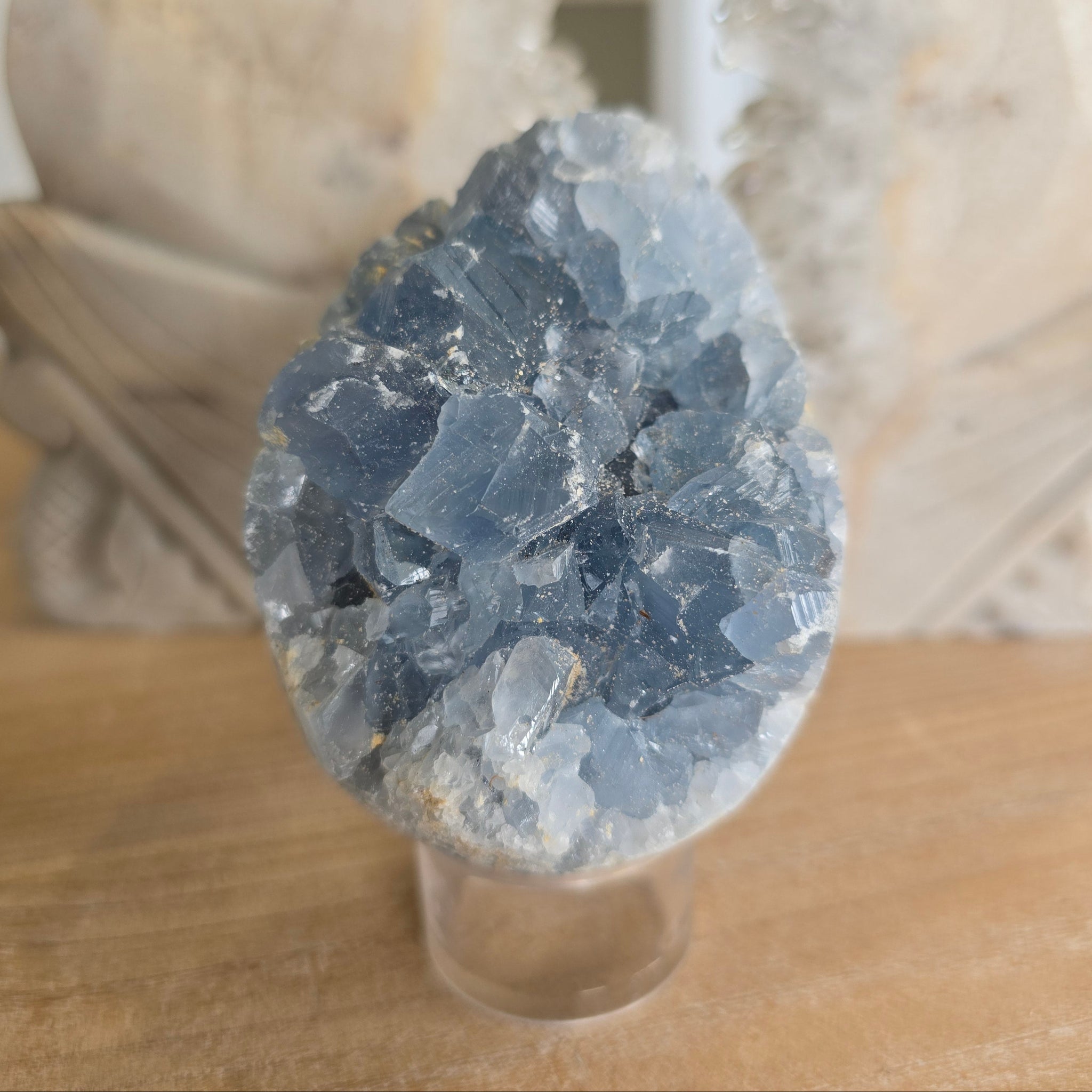 This stunning Celestite Egg is 364 g - approximately 7.5 x 5.5 x 4.75 cm. (Stand not included.).