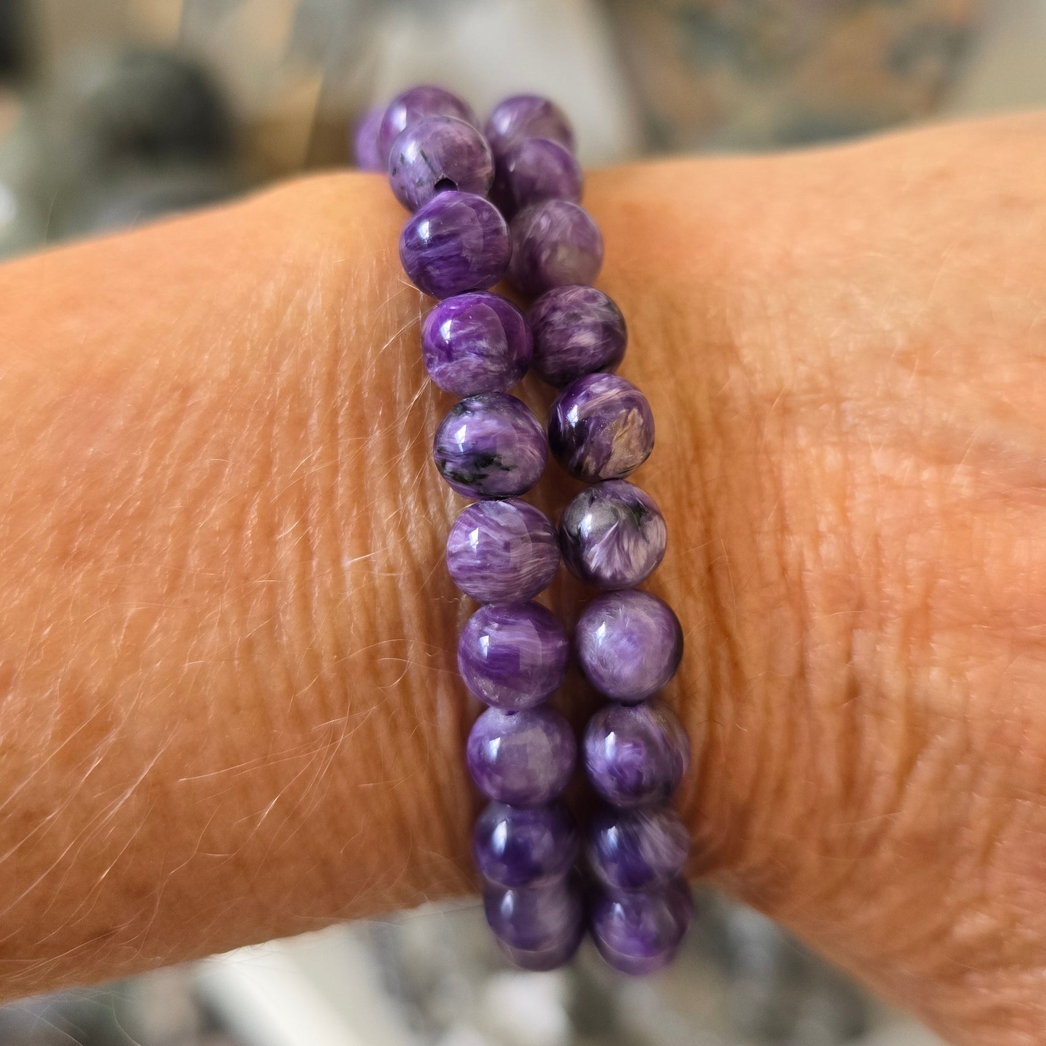 These gorgeous high quality Charoite bracelets are elasticised and fits most wrists. (On the smaller size) The beads are approximately 6 mm. Your bracelet will be chosen intuitively for you.