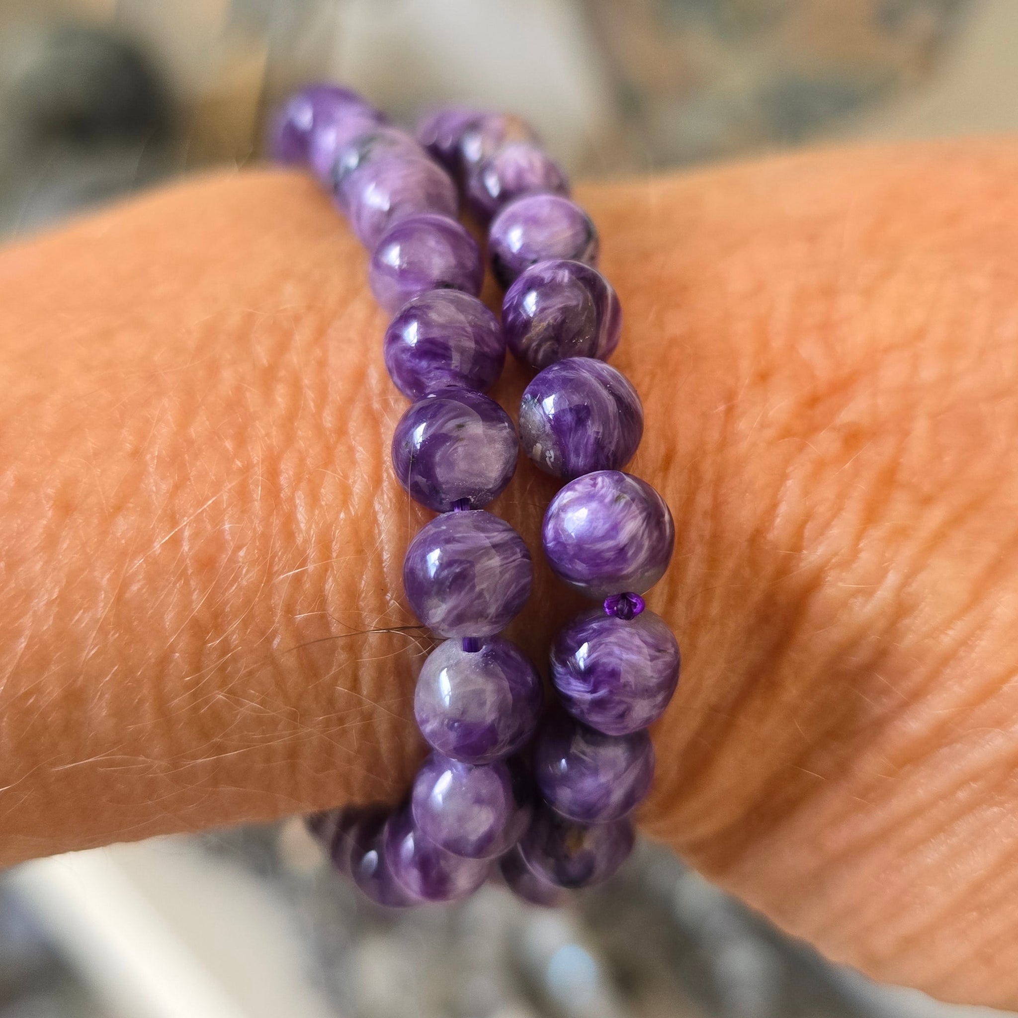 Charoite is believed to aid in navigating life's messy, turbulent changes by providing courage and fostering personal growth. It helps overcome deeply rooted fears, negativity, and compulsive behaviors. It is used to reduce stress, anxiety, and frustration.