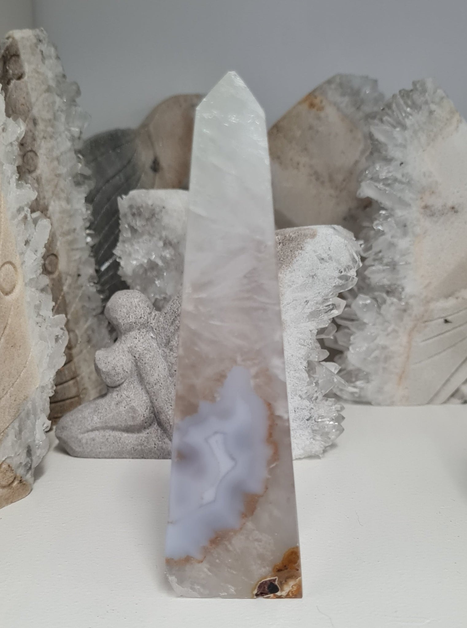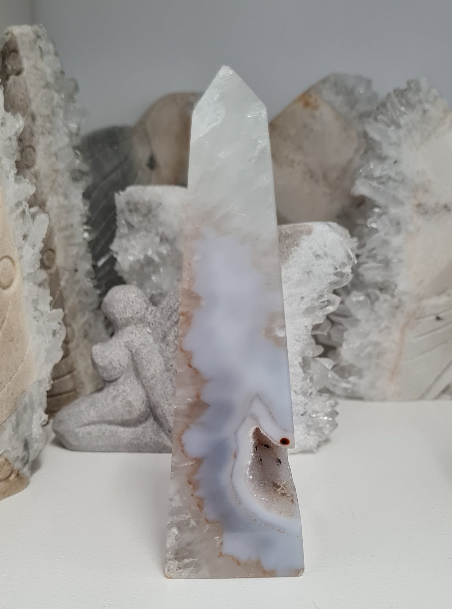 This gorgeous Druzy Agate Tower is 219 g - approximately 12.25 x 3.5 x 3.25 cm.