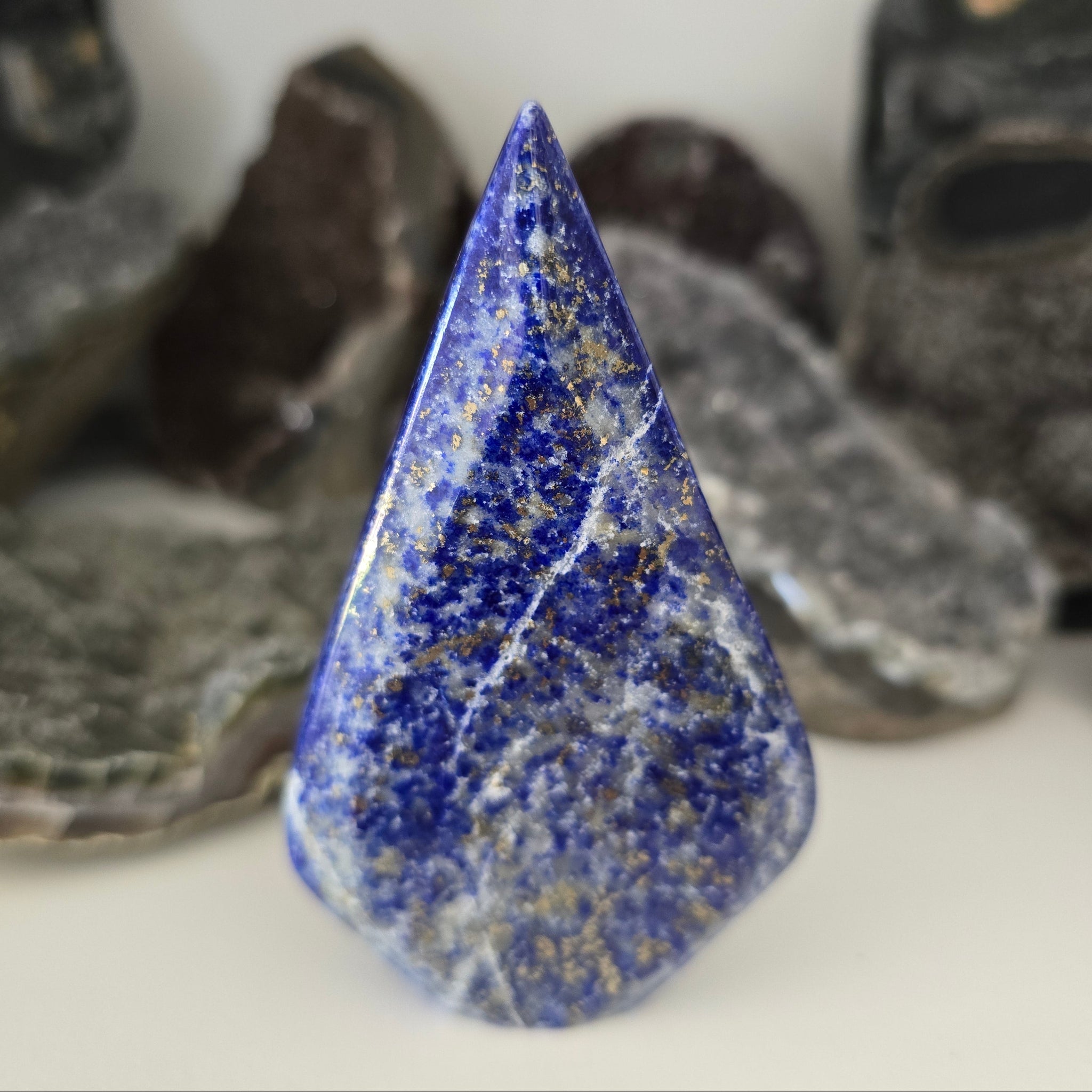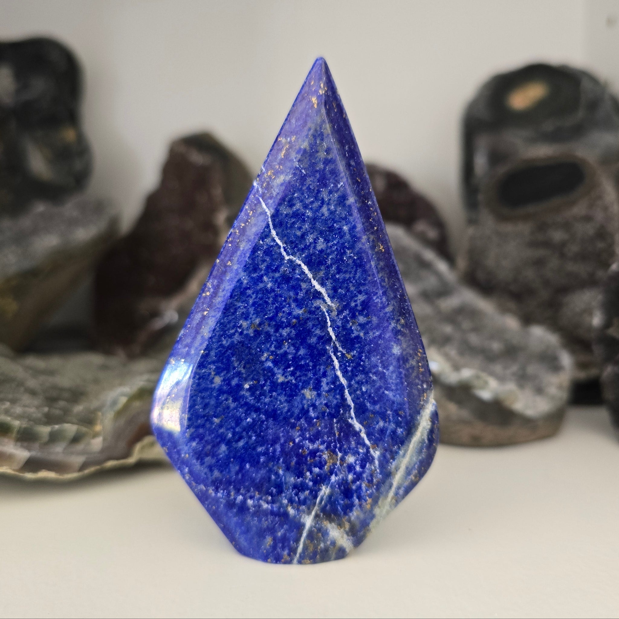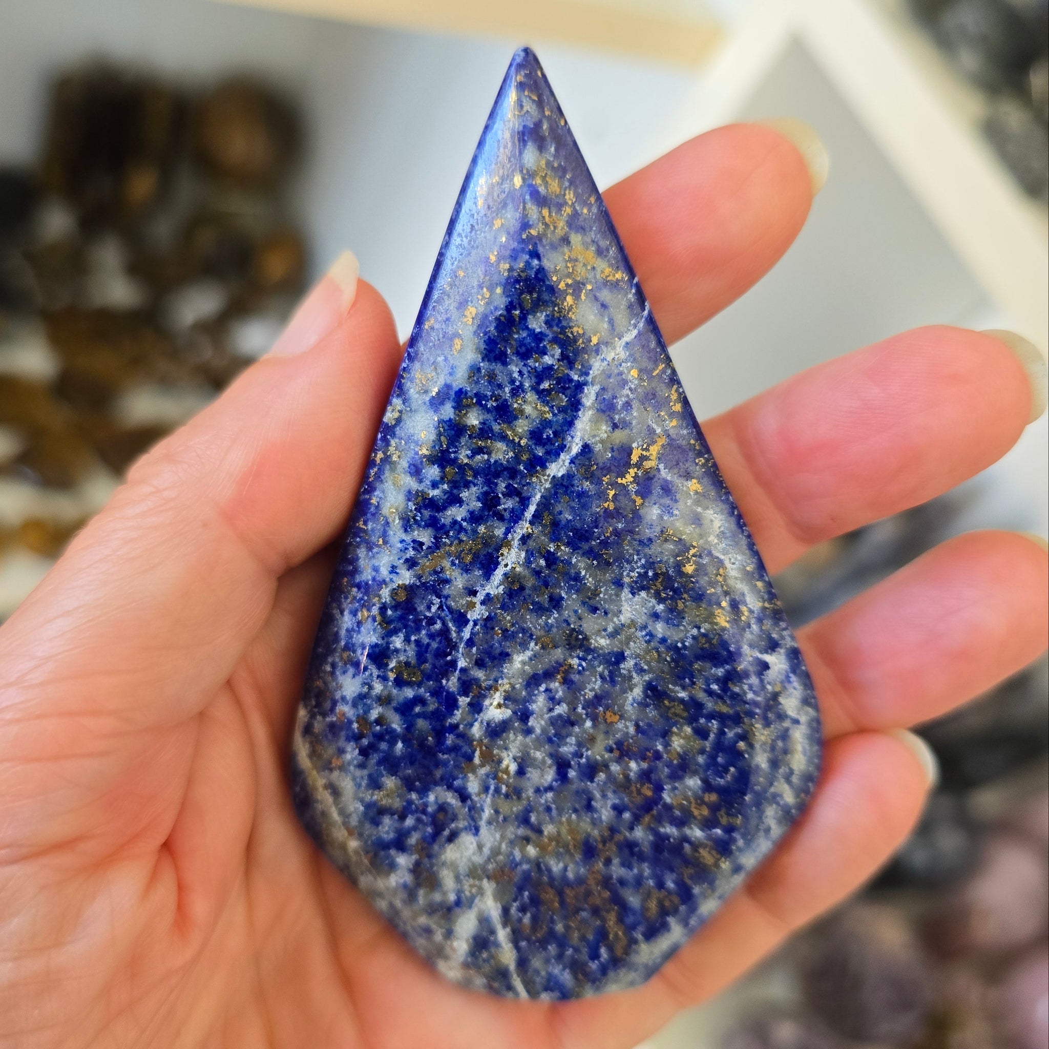 This Lapis Lazuli Flame is approximately 123 g - 9.5 x 5.5 x 1 cm.