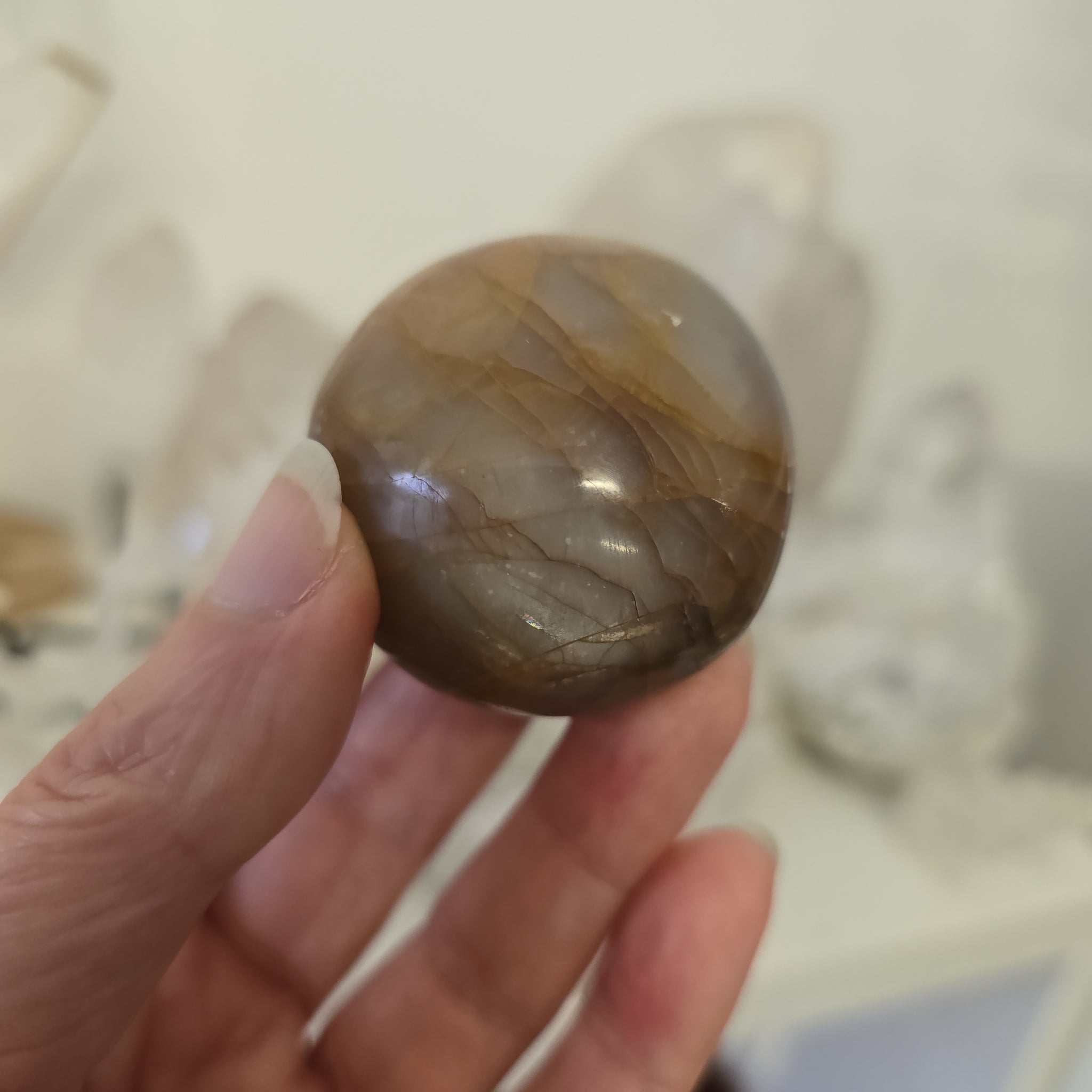 Peach Moonstone cultivates a sense of safety and a willingness to be vulnerable in a healthy relationship. It soothes, worry or anxiety, and brings out the best in people. It helps teach the value of patience.