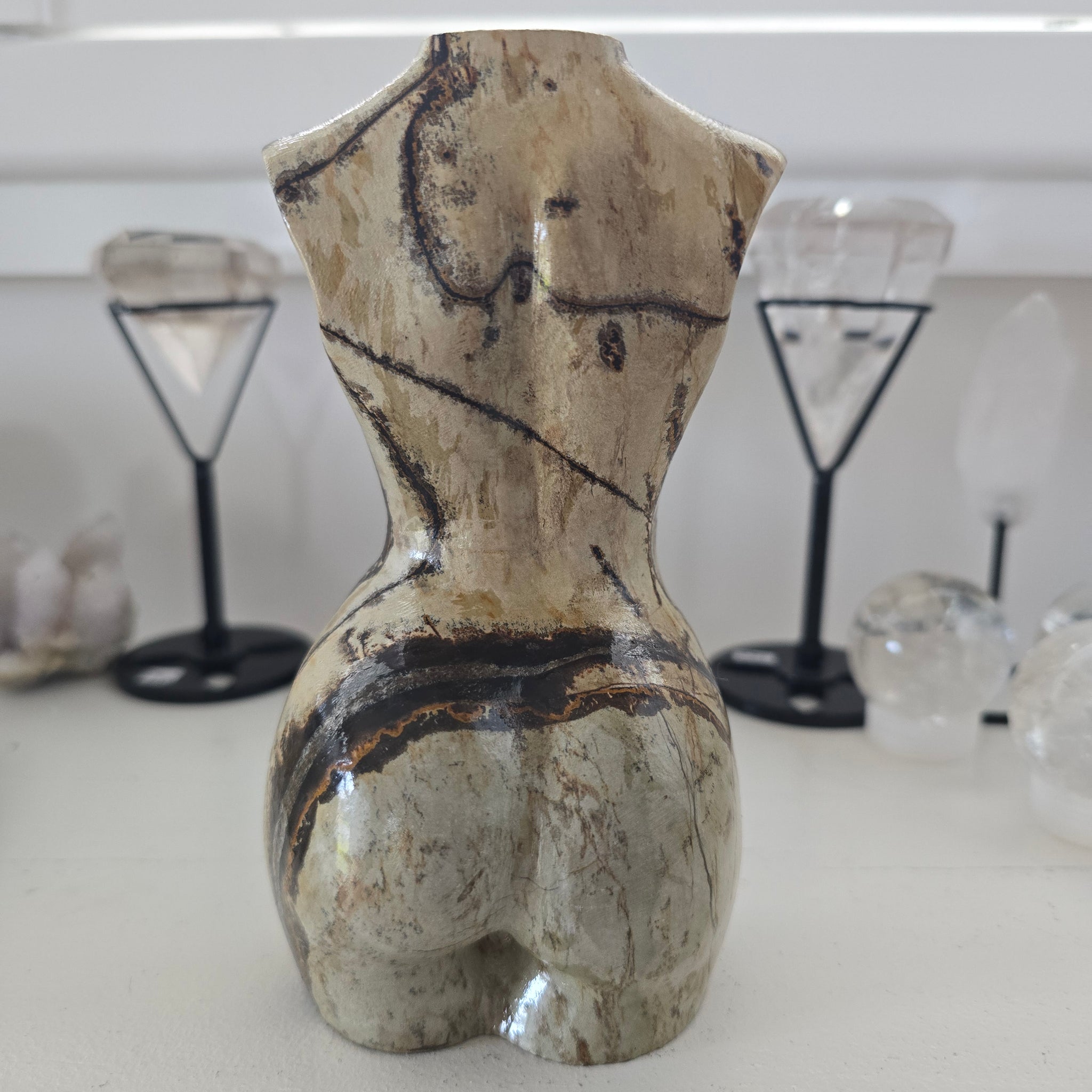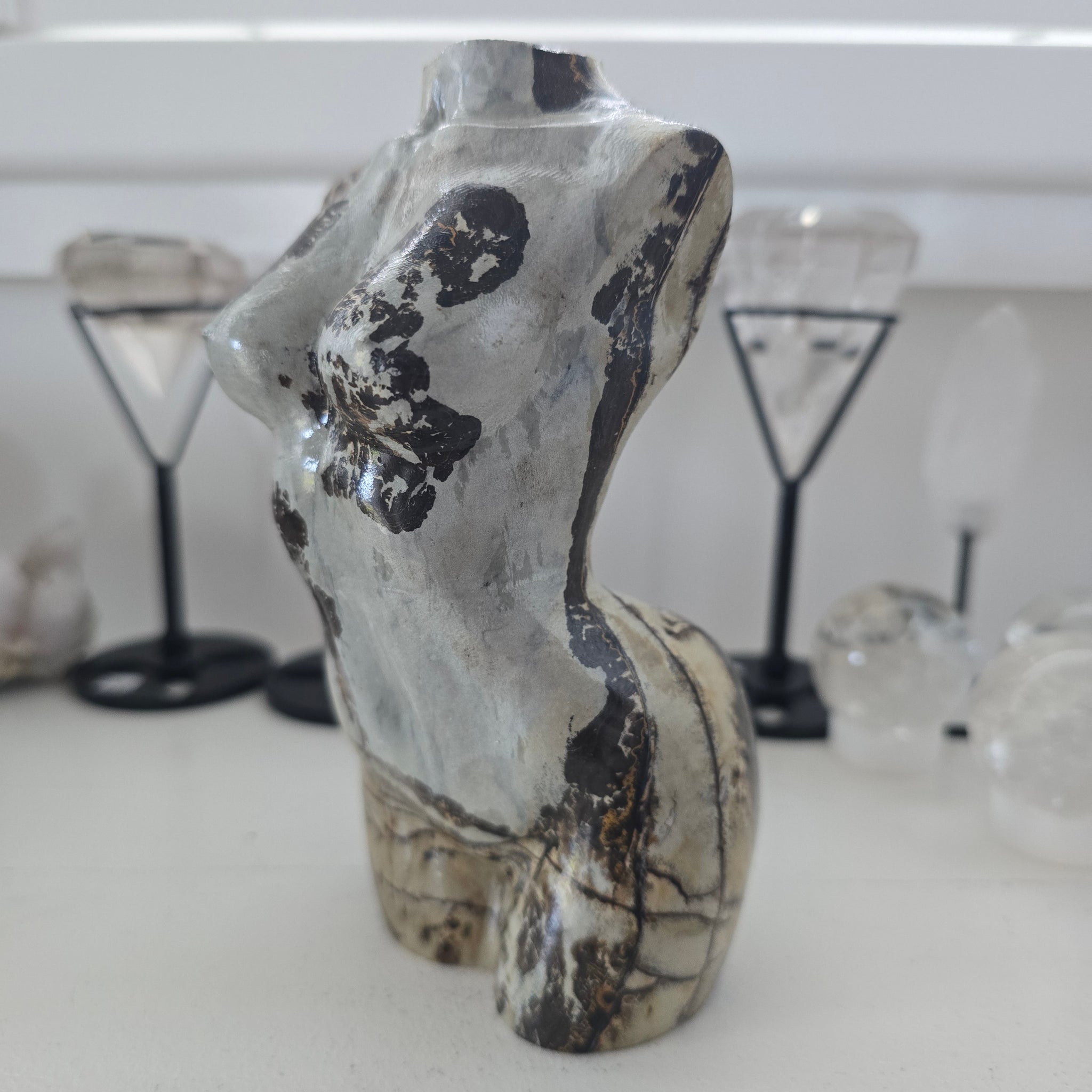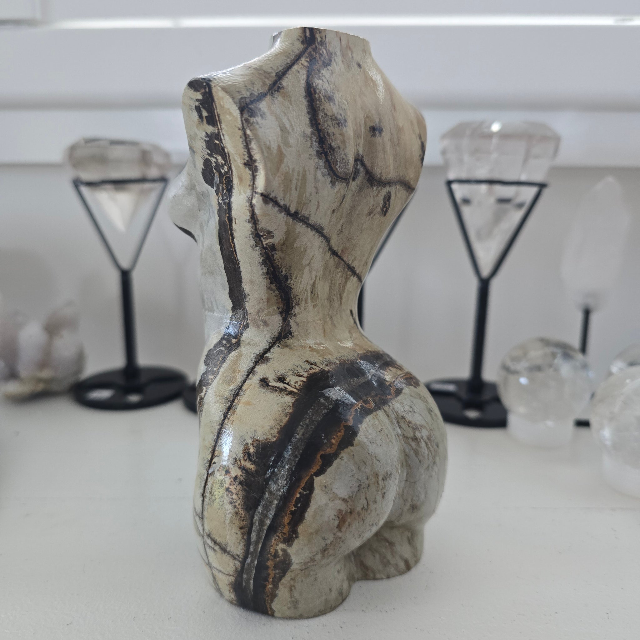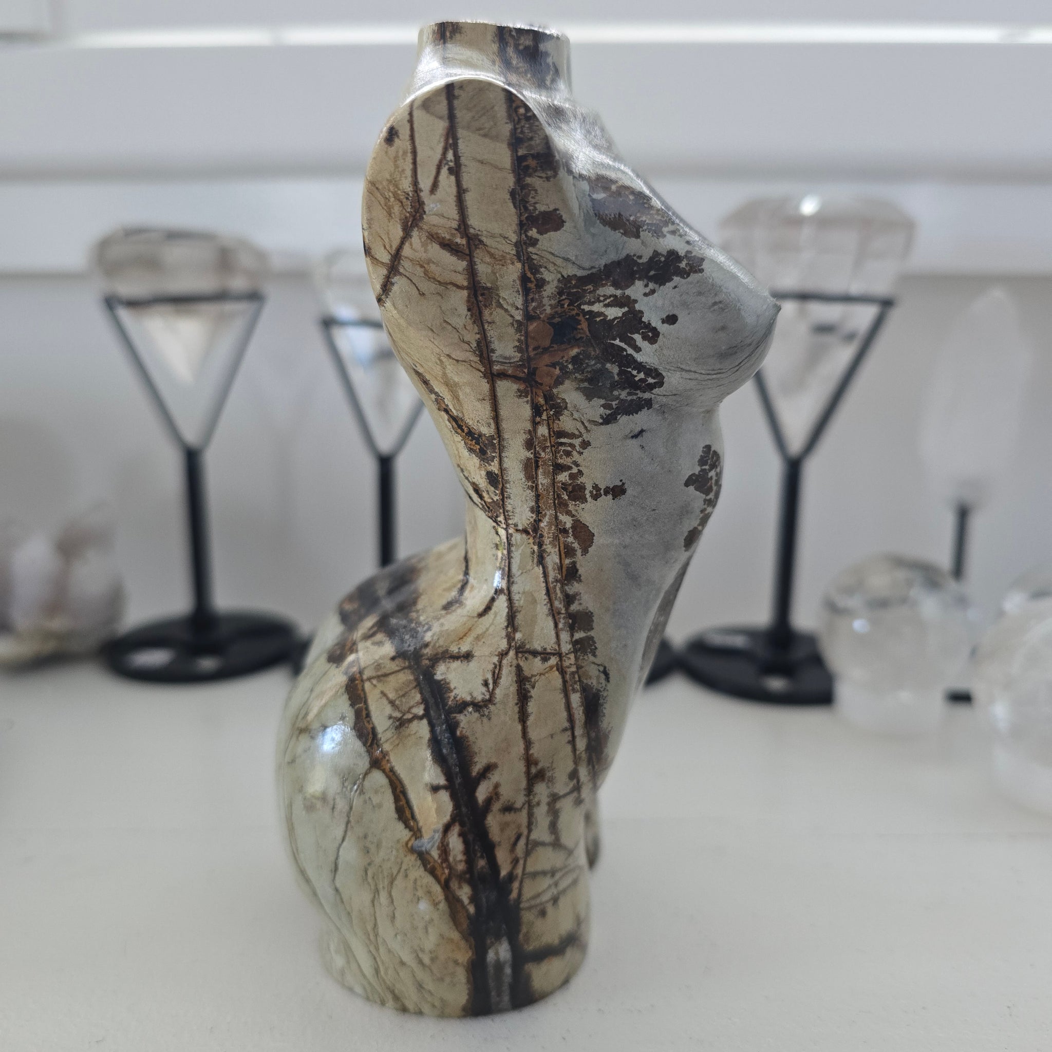 This beautiful Picture Jasper Goddess Body is approximately 14 x 6.5 x 5.5 cm. It weighs 936 g.