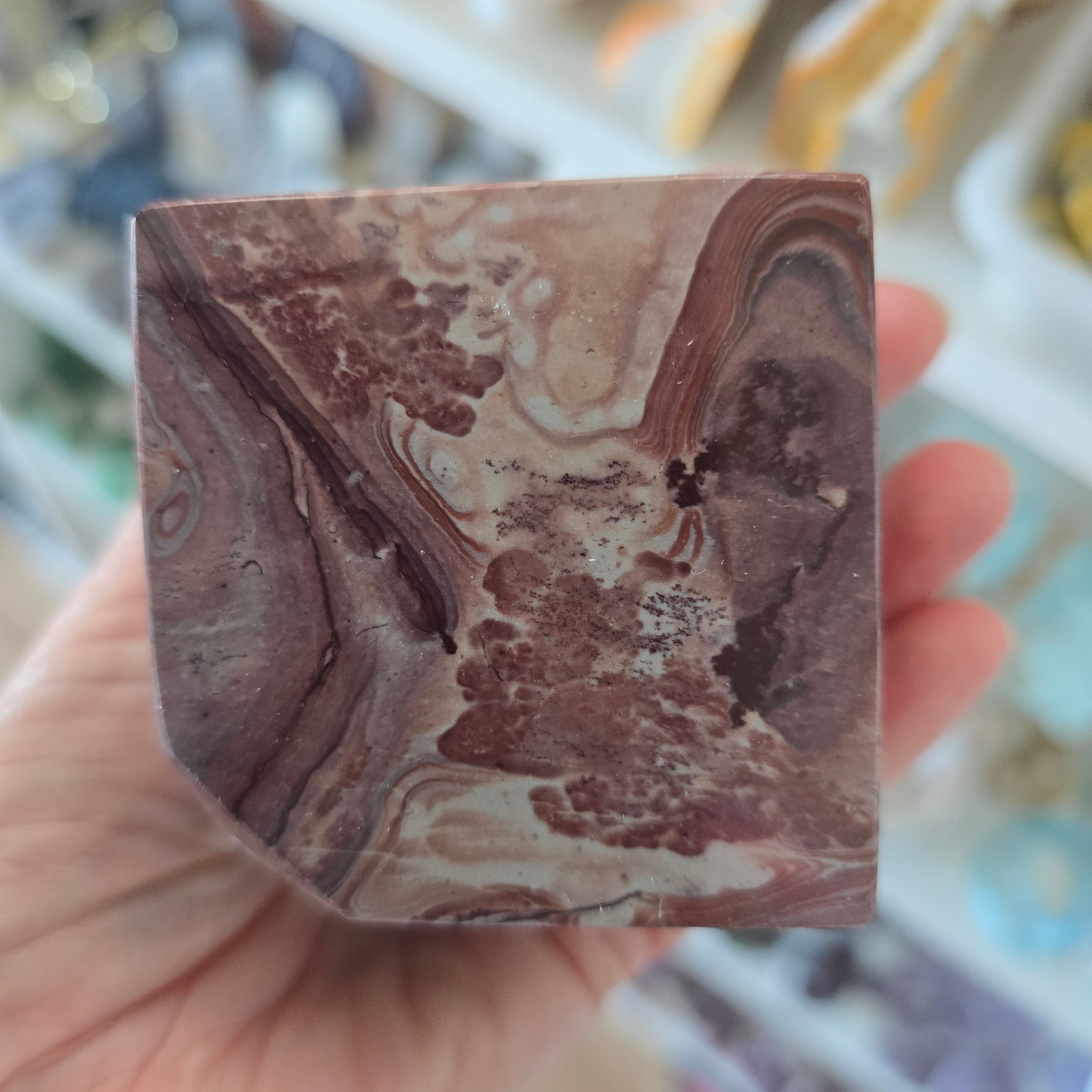 This beautiful Picture Jasper Spinning Cube is approximately 6 cm squared.. It weighs 572 g.