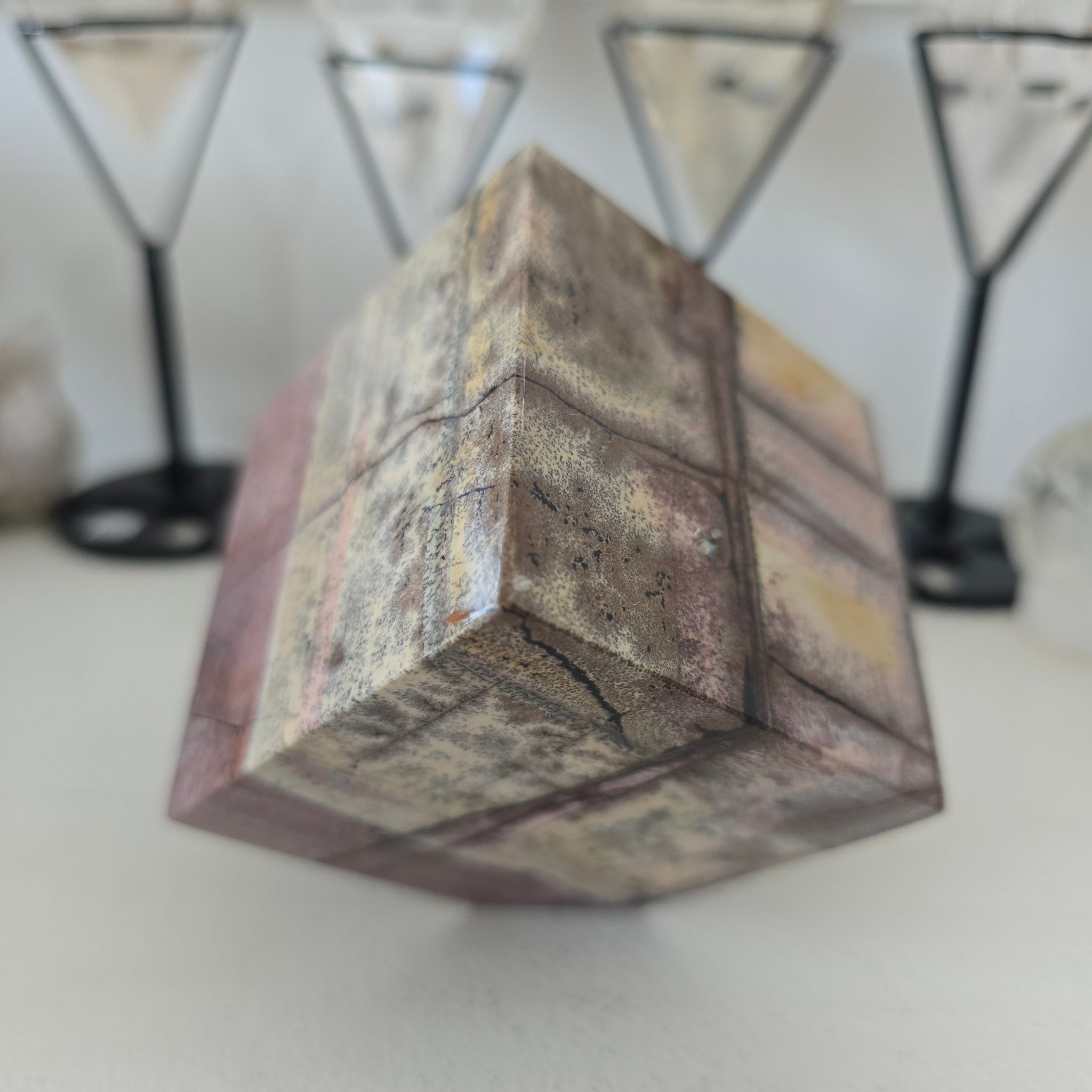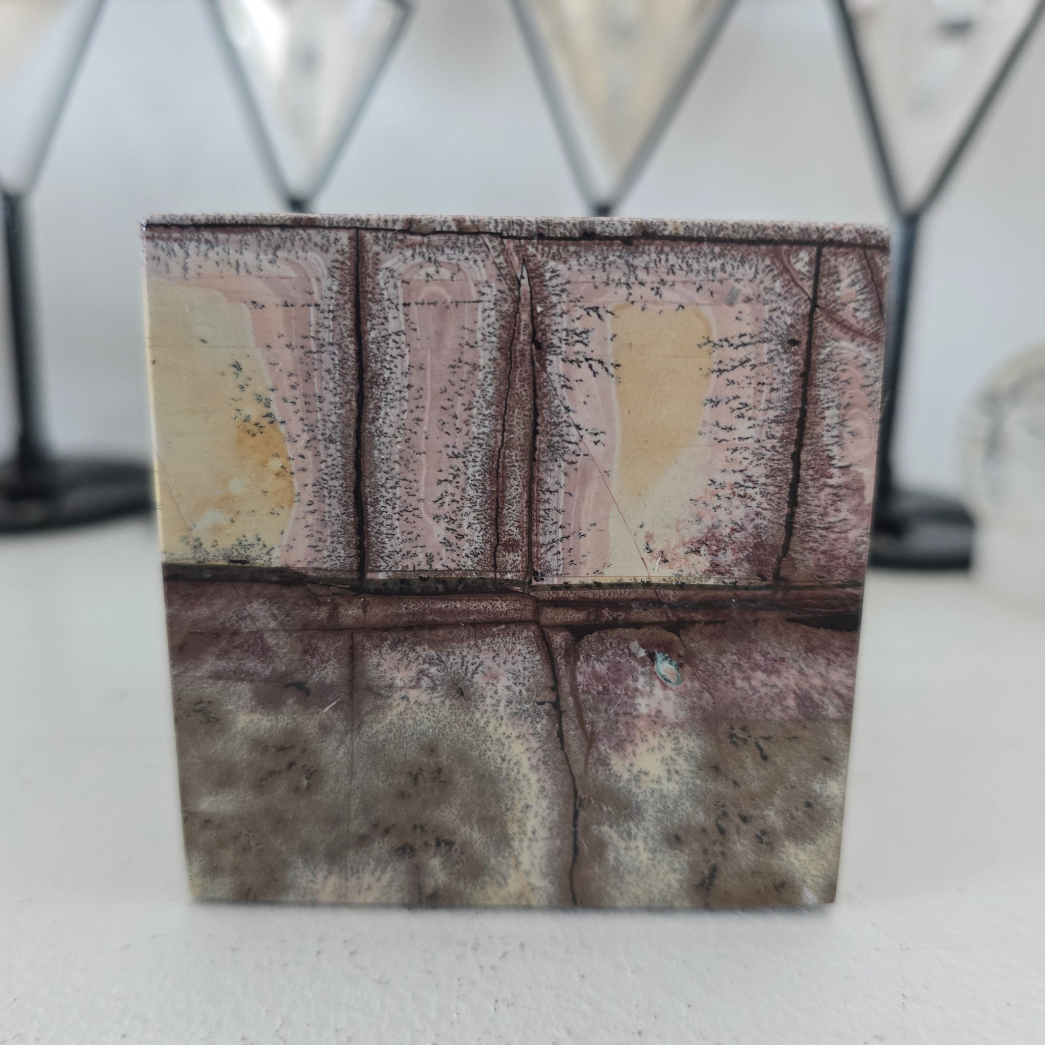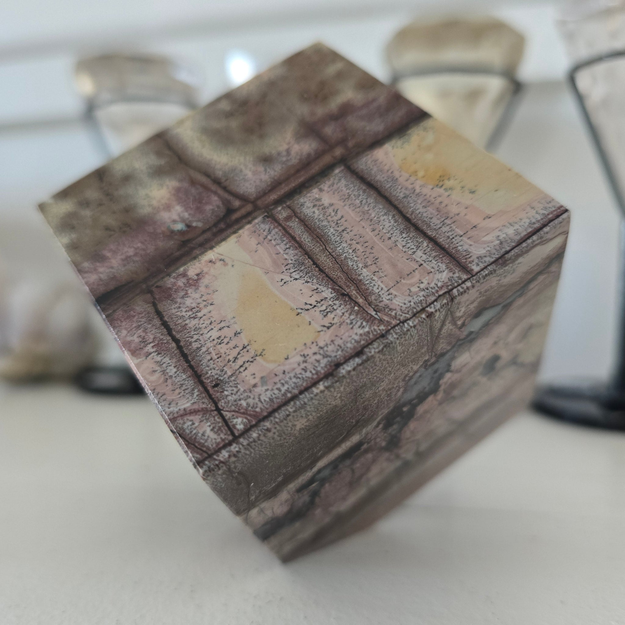 This beautiful Picture Jasper Spinning Cube is approximately 6 cm squared.. It weighs 593 g.