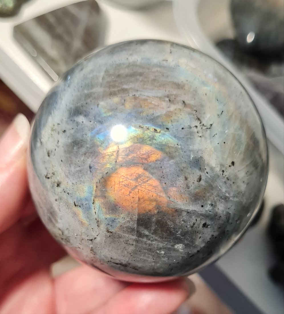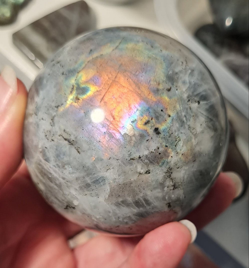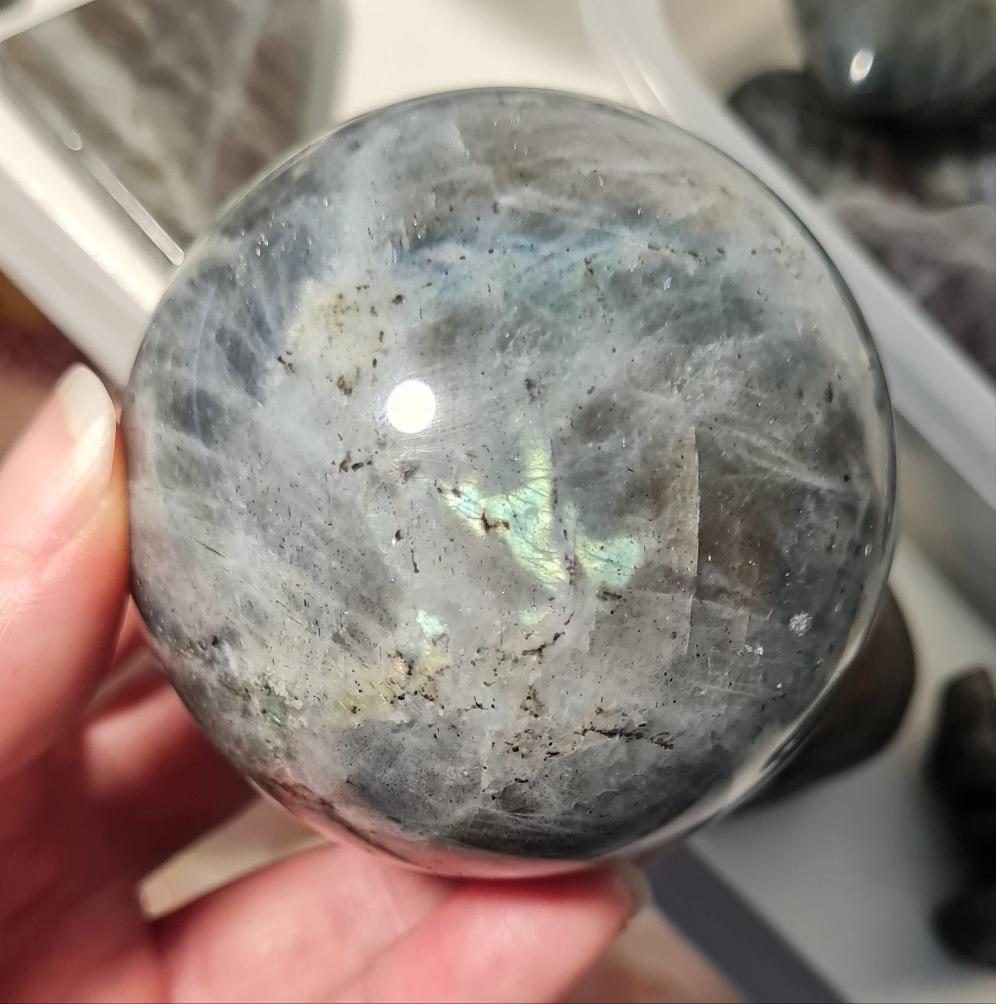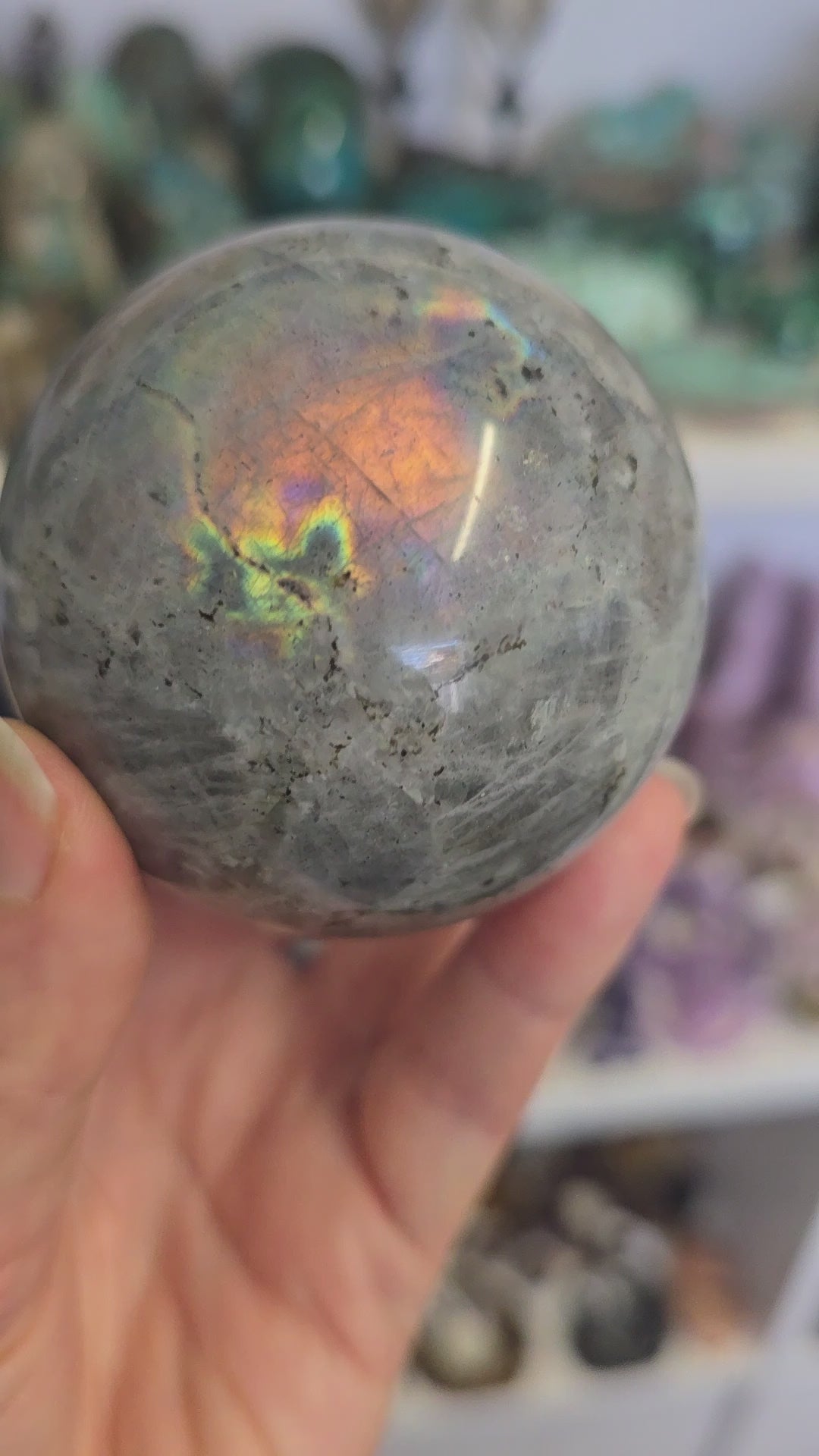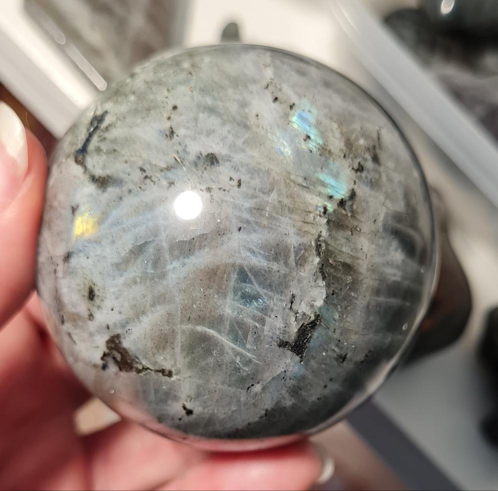 This gorgeous Purple Labradorite Sphere is 366 g - approximately 6 cm in diameter.