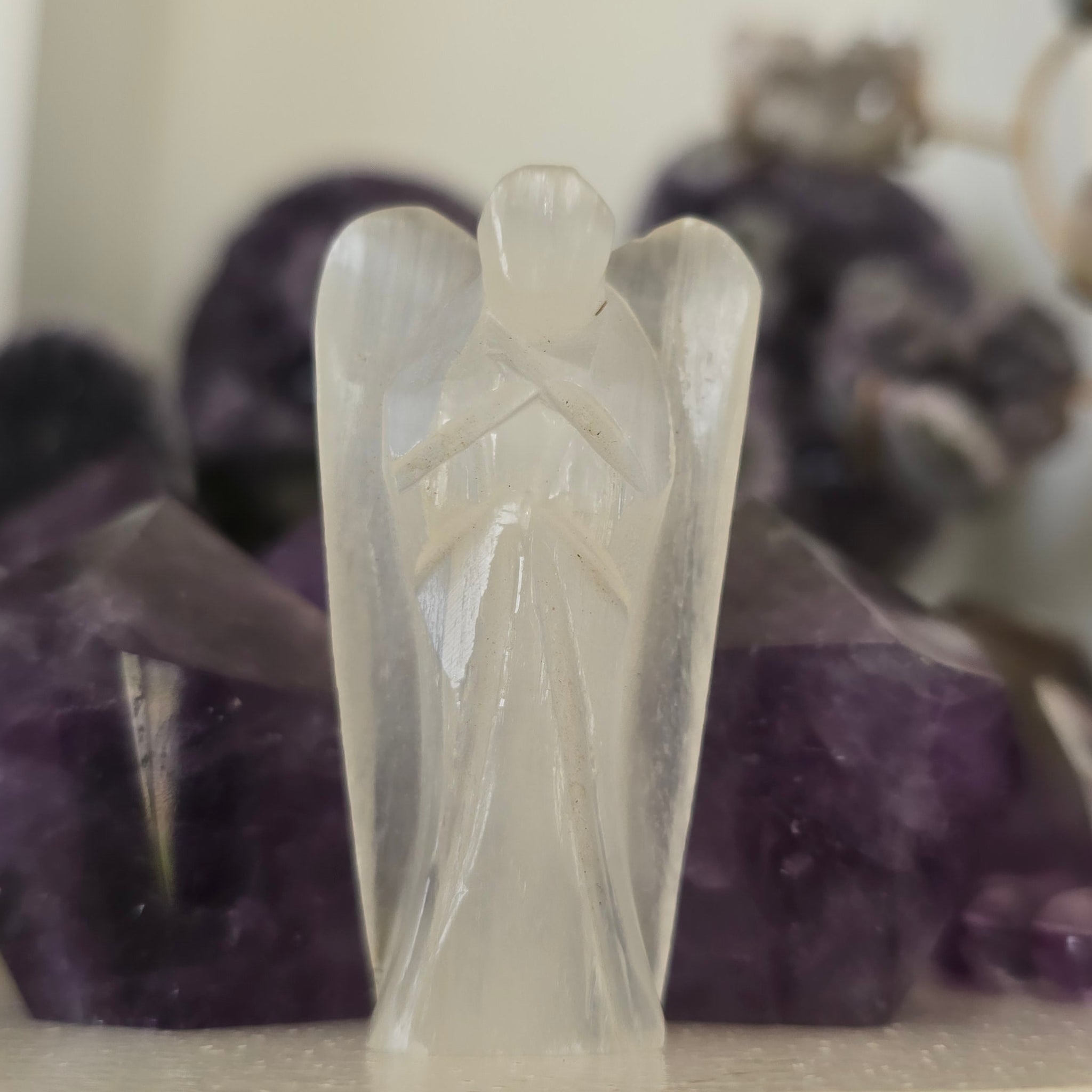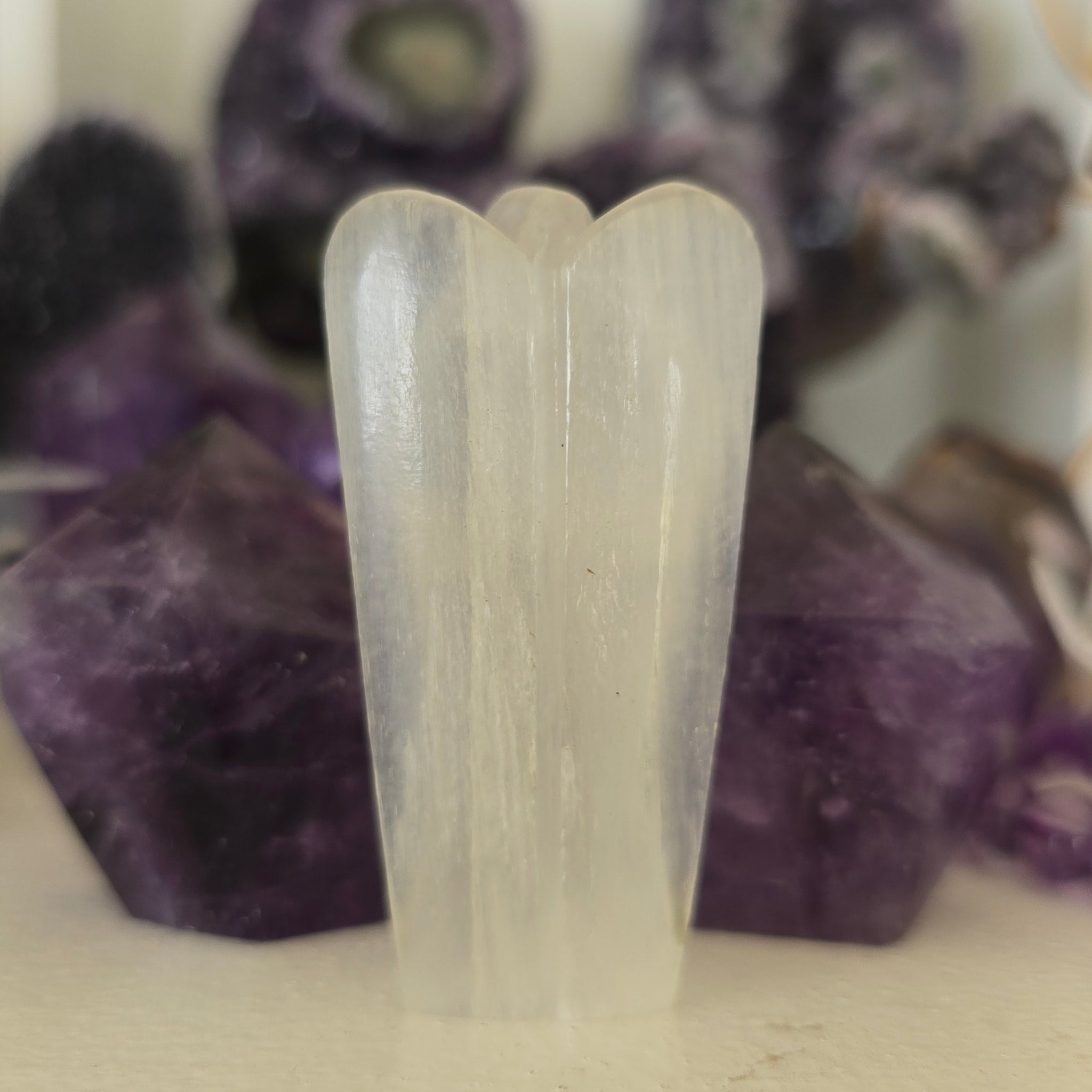 Selenite is used in spiritual healing to help cleanse, restore peace, harmony, and purify our minds. Its translucent white colour makes selenite a stone of light and spiritual purity. Selenite can help quiet the mind, protect against negative thoughts, negative memories, mental blockages, receive mental clarity and protect against psychic attacks. Selenite can also help us bring clarity, purity and honesty into our lives. It helps bring us compassionate vibrations to encourage healing and reconciliation.